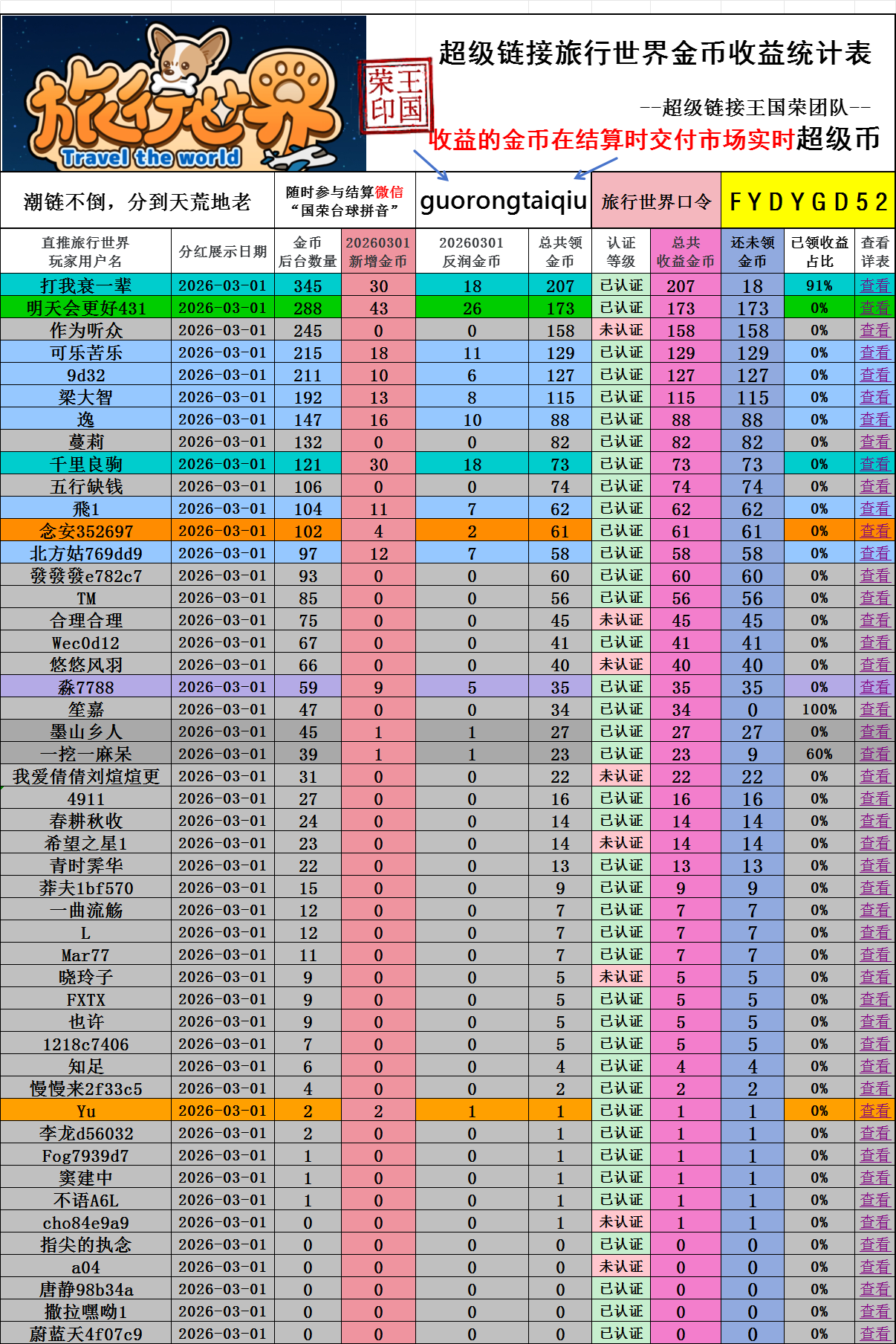 旅行世界同玩每周收益20260301